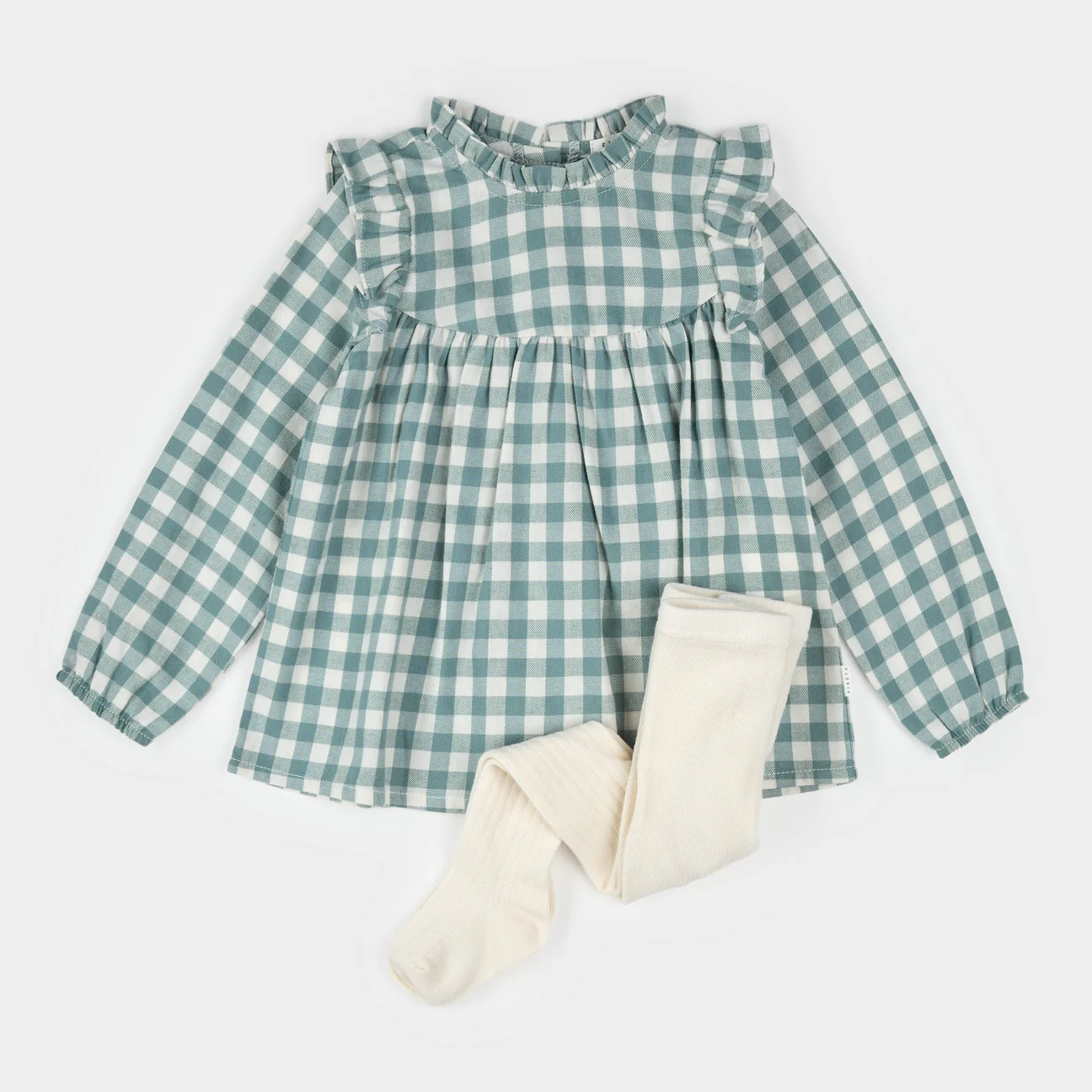Petit Lem Teal Gingham Brushed Twill Dress Set